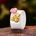 Lotus Fun Real 925 Sterling Silver Natural Handmade Fine Jewelry Ceramics Cute Bee Kiss from a Rose Jewelry Set for Women Bijoux