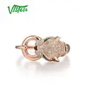 VISTOSO Genuine 14K 585 Rose Gold Chic Rings For Lady Sparkling Diamond Engagement Anniversary Simple Style Eternal Fine Jewelry