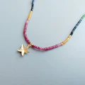 Lii Ji Genuine Stone Multi Sapphire Labradorite Charms 9K GF Chain Necklace Delicated Handmade Link Necklace