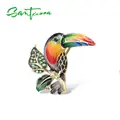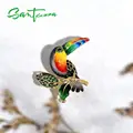 SANTUZZA Silver Brooch For Women 925 Sterling Silver Yellow Gold Color Colorful Parrot Birds Animal Jewelry Handmade Enamel