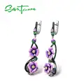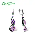 Limited Price SANTUZZA Silver Earrings Women Sterling Silver Purple Flowers Earrings Wedding with Free Worldwide Shipping!
