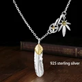 Solid 925 Sterling Silver Necklace For Men Vintage Charms Takahashi Goros Pendant Eagle Feather Chain New Popular Jewelry P1022