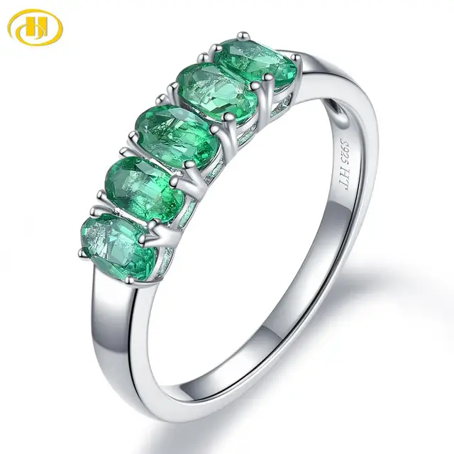 Special Offer Hutang Precious Emerald Women Crown Sterling Silver Natural Gemstone Engagement with FREE Worldwide Shipping!